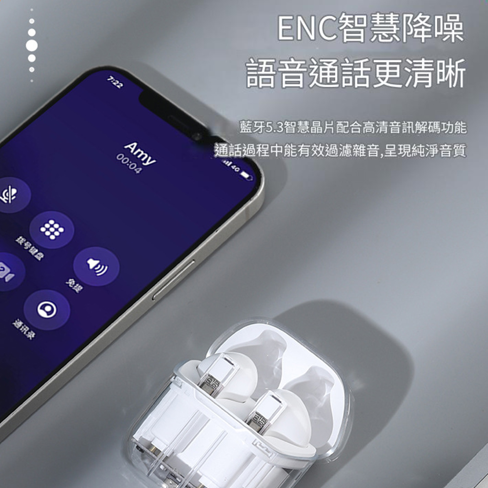 台灣製造 TW-TM3 半透明機械藍牙耳機 降噪真無線藍牙耳機