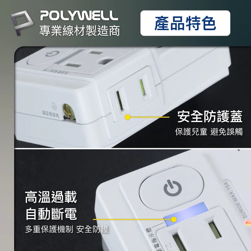 插座內有特殊防護蓋設計, 單孔不易插入, 有效預防外物插入造成觸電的危險