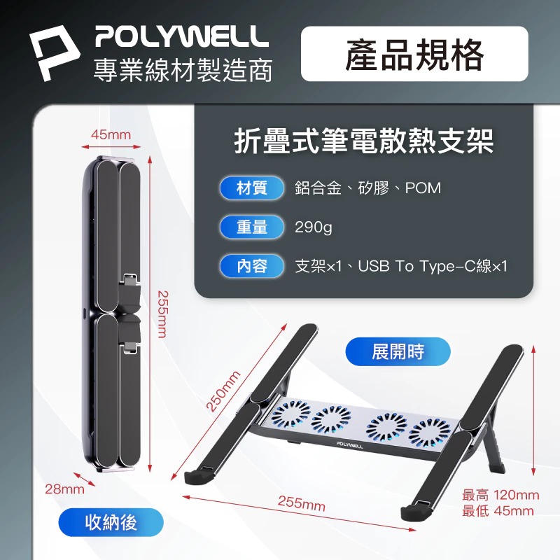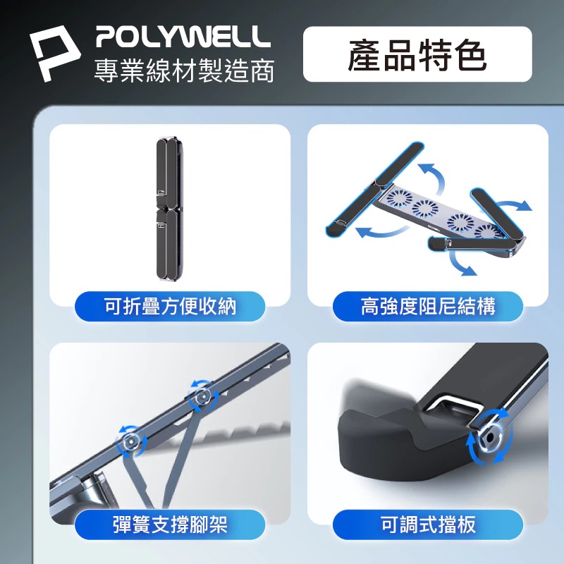◎ 品名:POLYWELL 折疊式筆電行動散熱支架此商品為現貨+預購,如有急用請先行問與答詢問 |