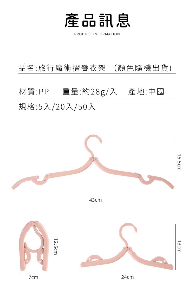 品名:旅行魔術摺疊衣架(隨機顏色)