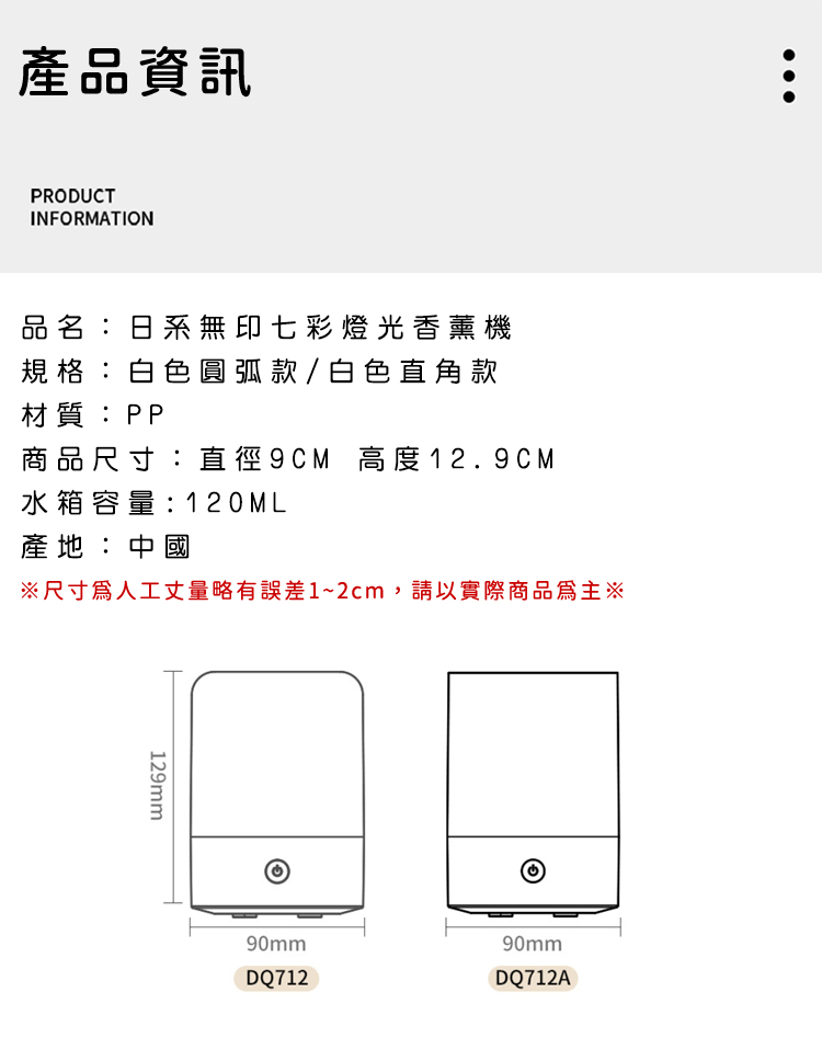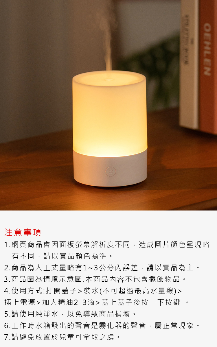 品名:日系無印七彩燈光香薰機/超聲波霧化擴香機