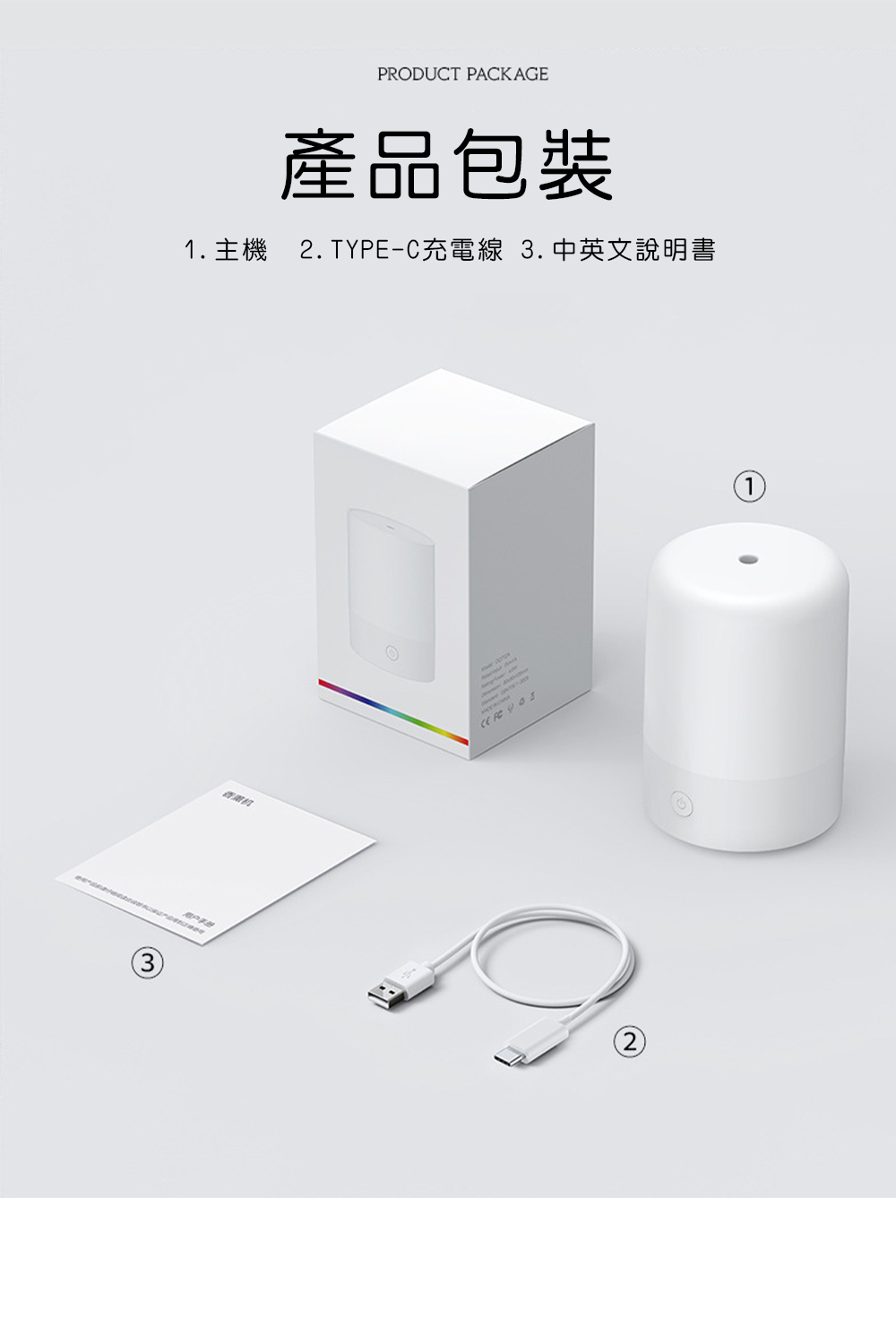 包裝內容:香薰機/TYPE-C充電線/說明書