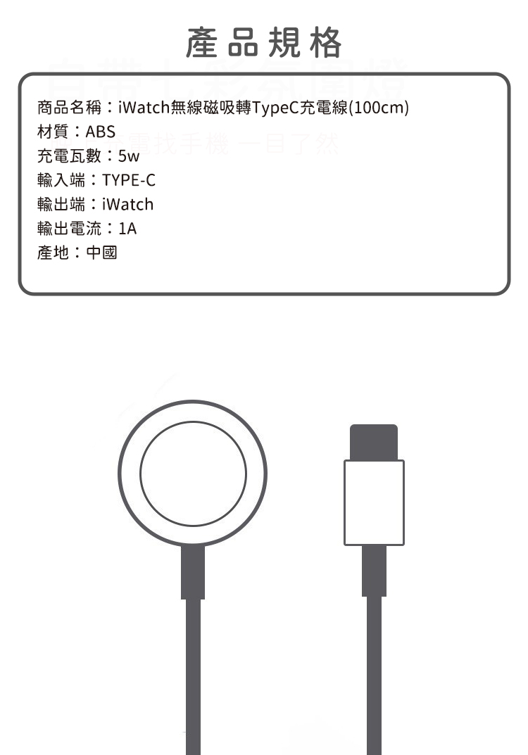 品名:iWatch無線磁吸轉TypeC充電線
