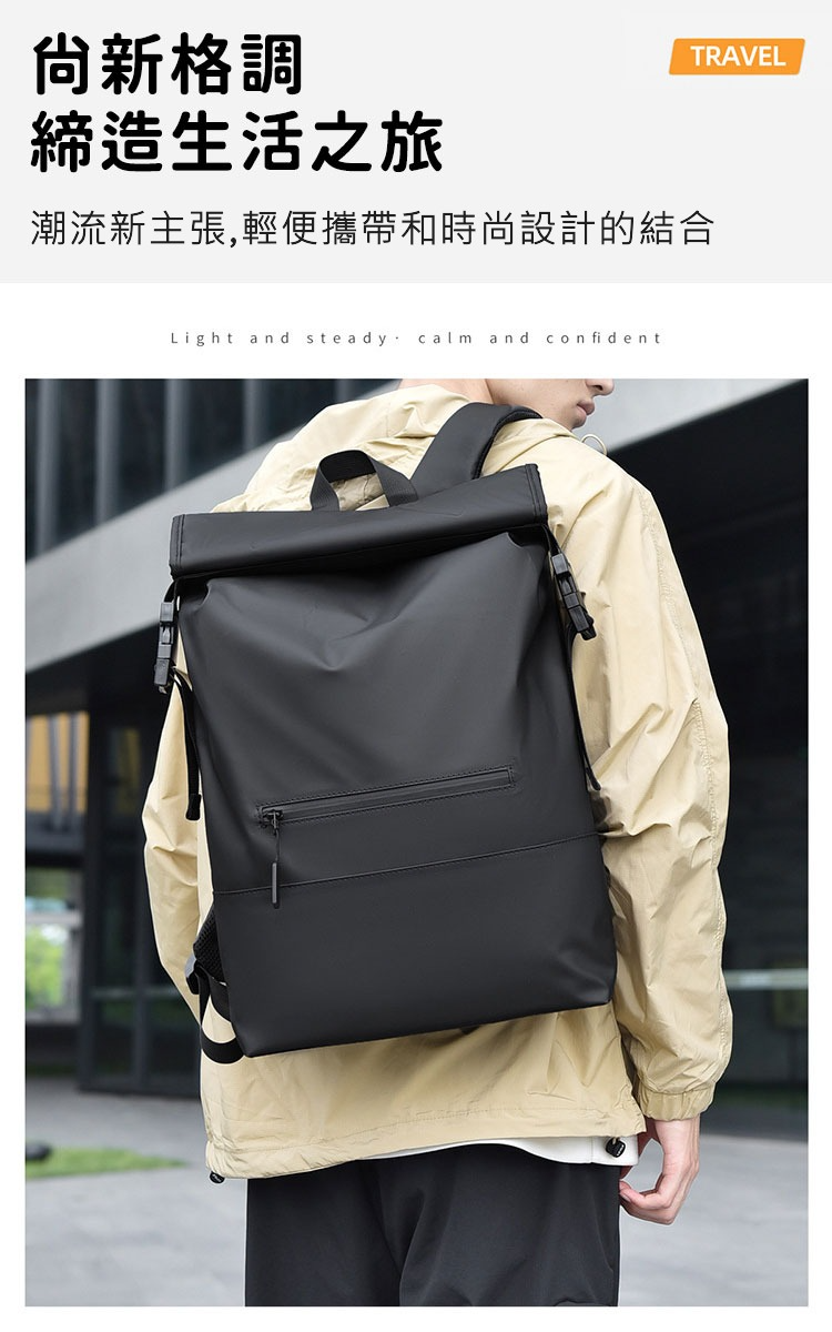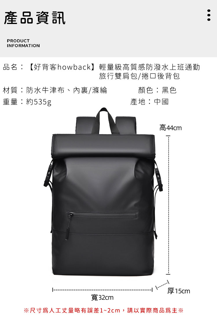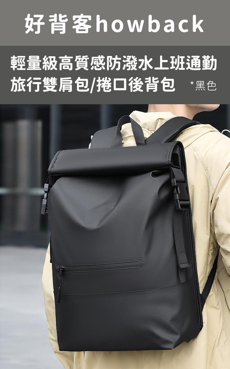 【好背客howback】輕量級高質感防潑水上班通勤旅行雙肩包/捲口後背包