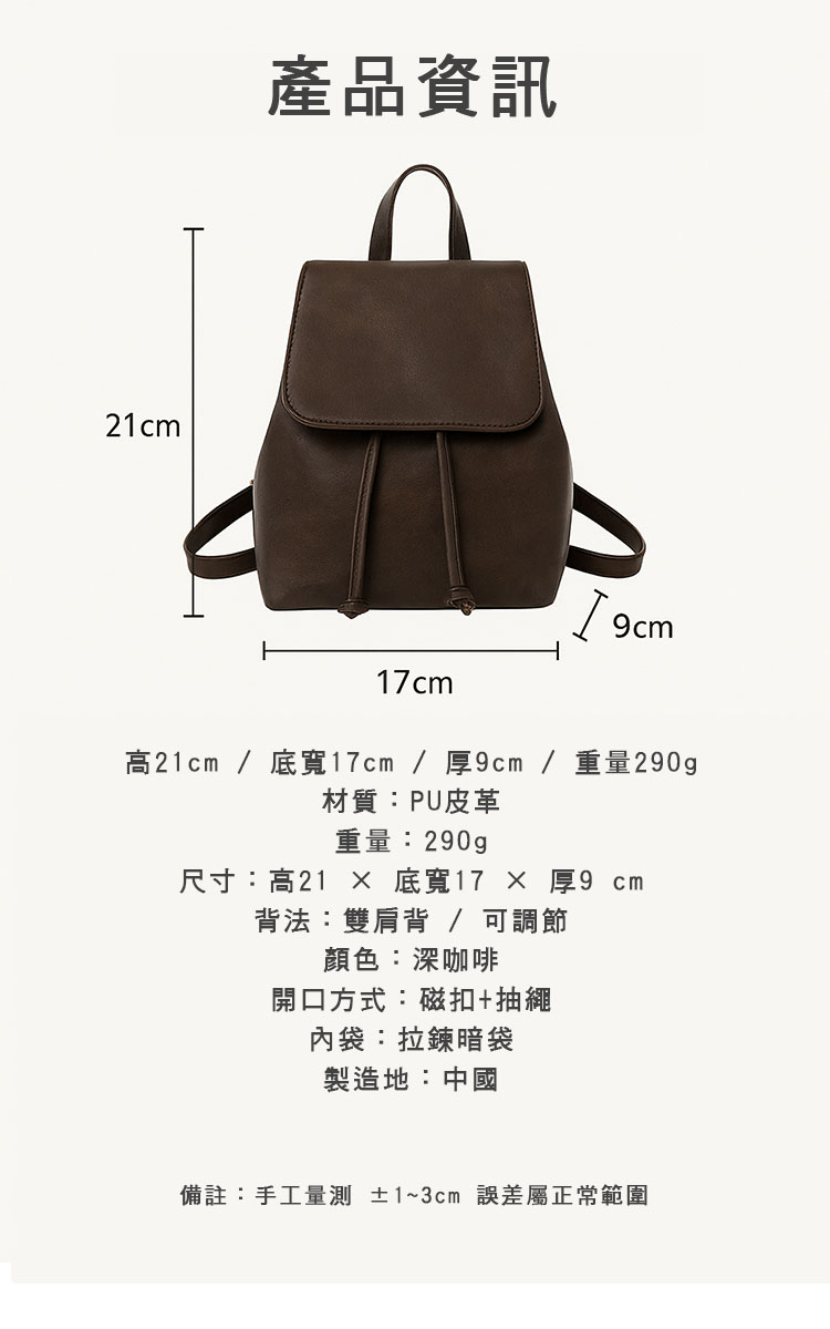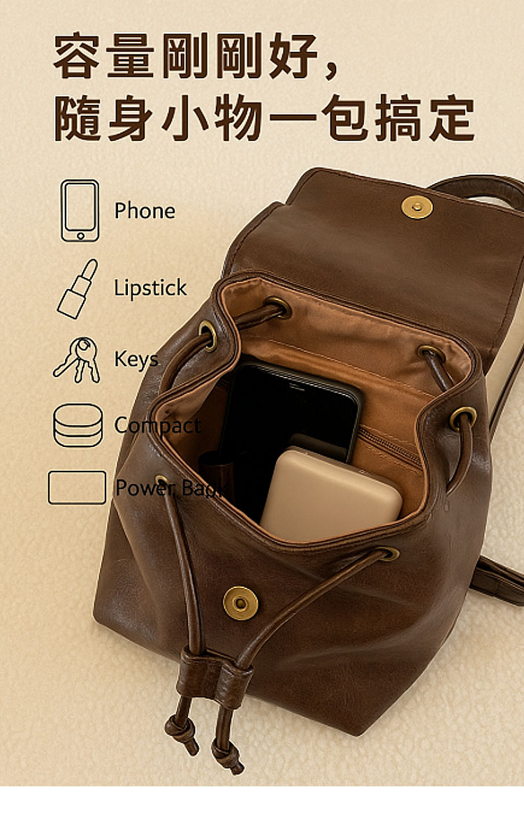 品名:美式復古雙肩小包/後背包/PU皮質感/通勤休閒百搭