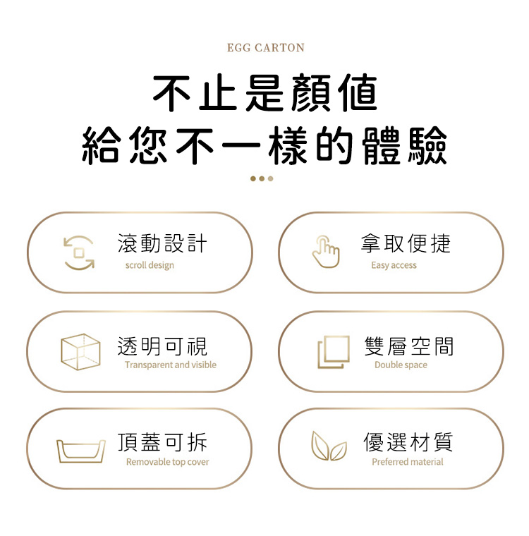 雙層滑軌設計,自動補位不卡蛋,透明可視、防碰撞,讓每顆雞蛋都有位置。