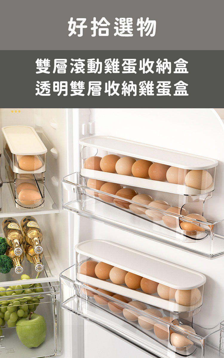 雞蛋收納盒,滾動蛋架,冰箱收納,雙層蛋盒,透明蛋盒