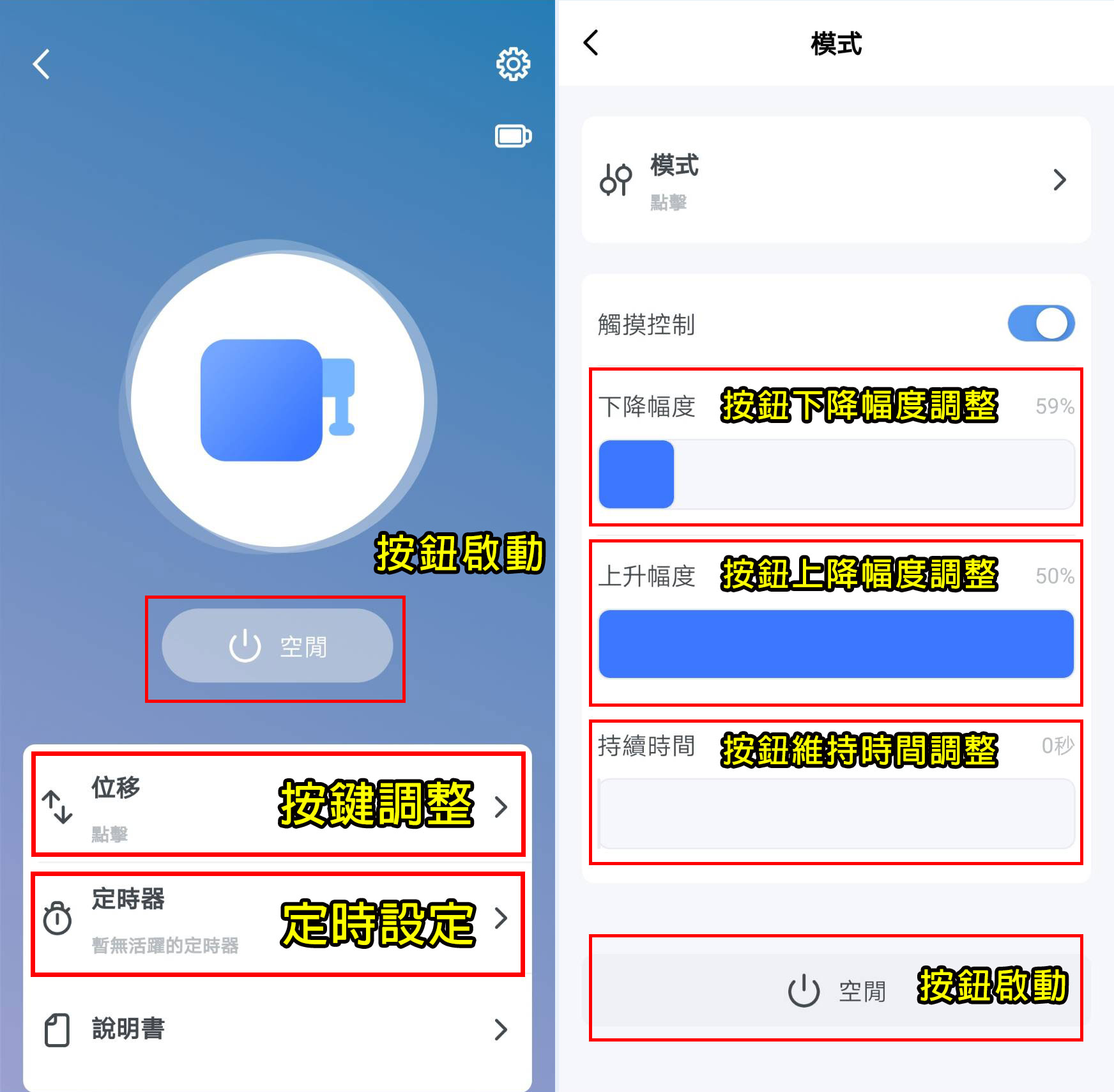 💡觸摸控制:物理按鈕允許在不使用手機的情況下激活手指機器人。將手指放在按鈕上,至少0.1s。手指機器人將被觸發。