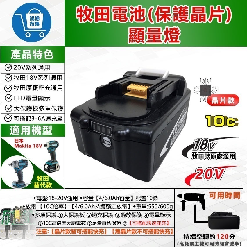 牧田款 18V電池 18v 4A/6A 晶片横灯電池