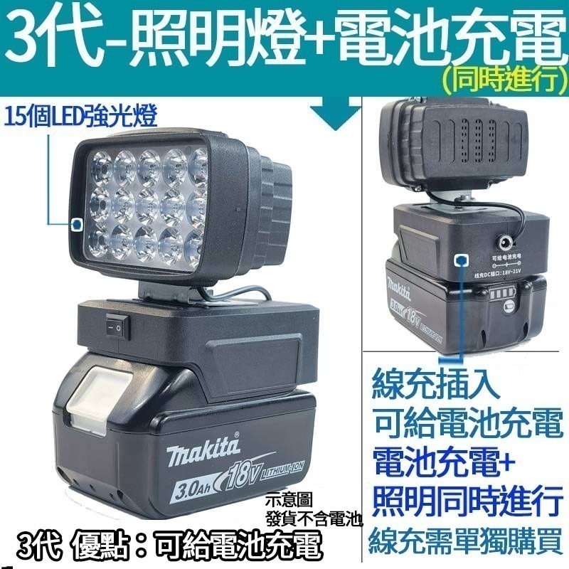 🟢工作照明-緊急停電照明 🟢野外露營 無電池&無充電器 🟢可選牧田18V 工具機電池 & 充電器(賣場內有電池可加購)