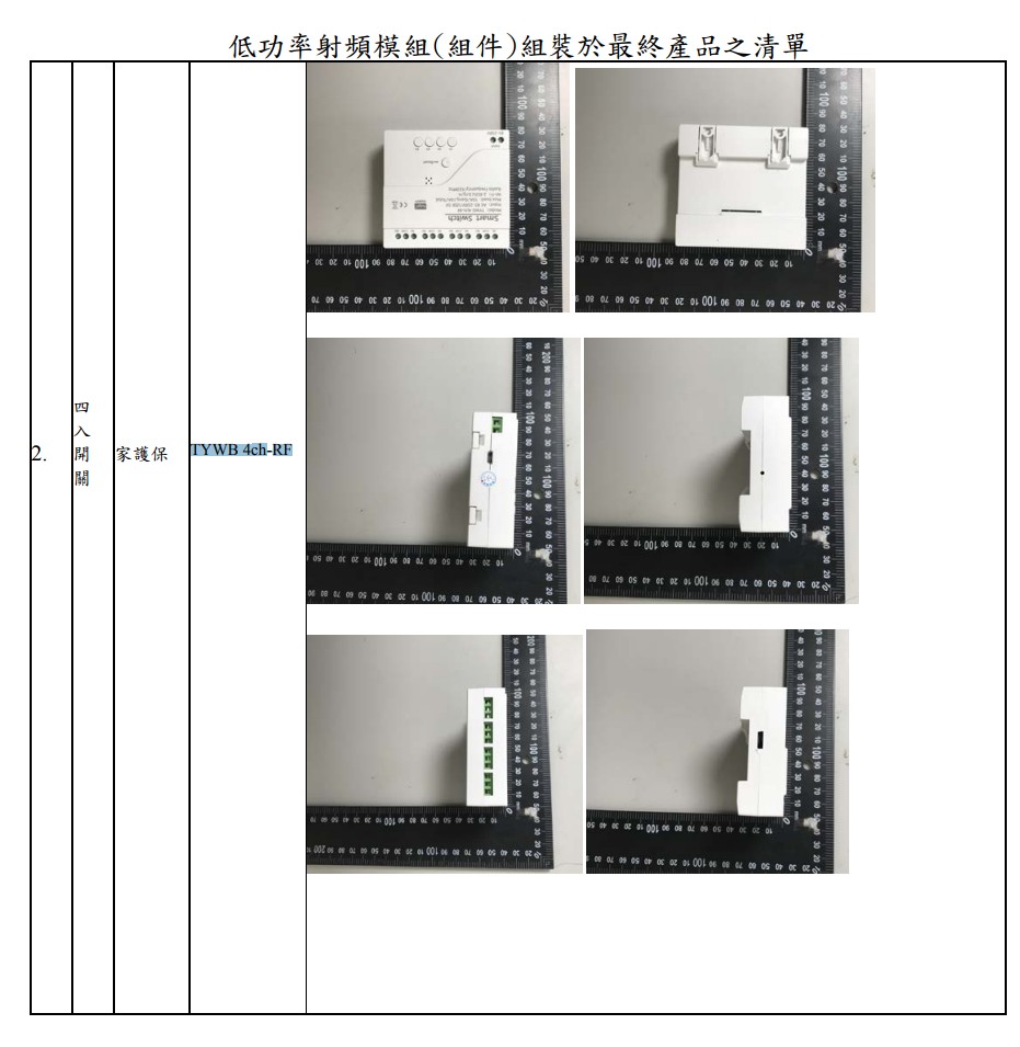 清冊型號TYWB 4ch-RF