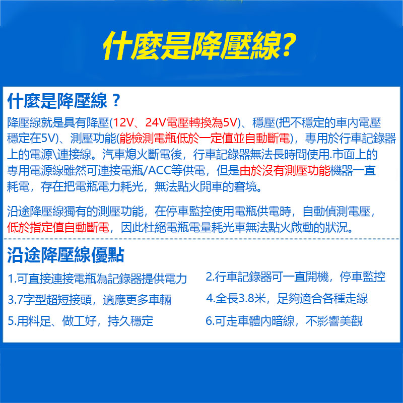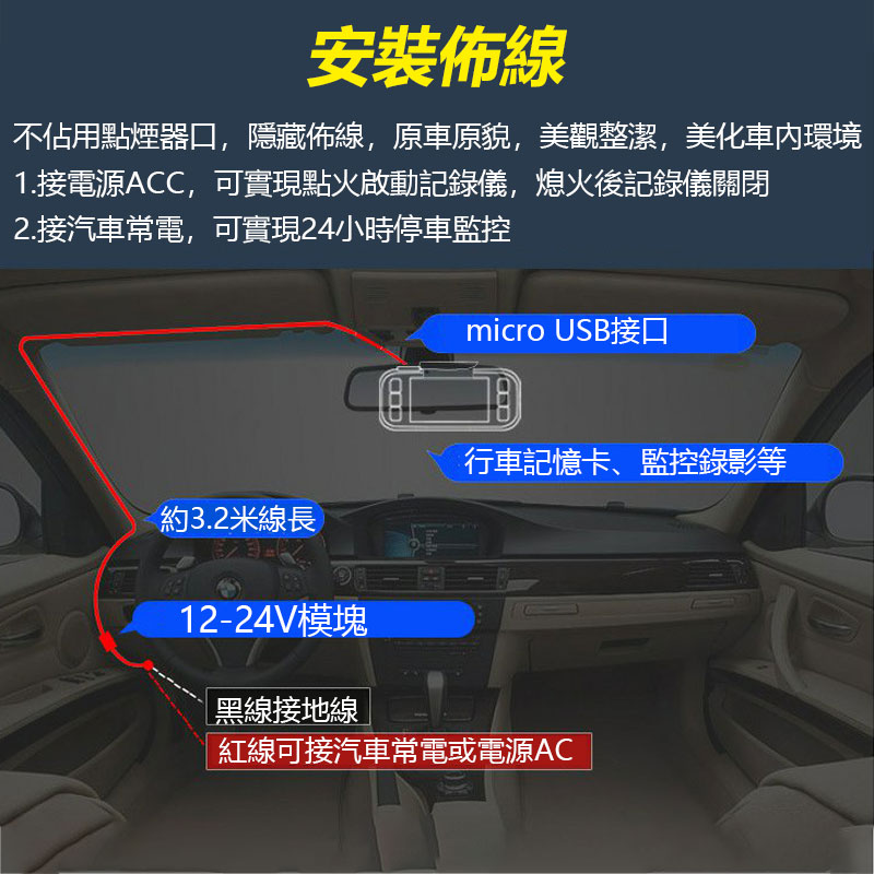 microUSB降壓線 安卓接口 12V-24V轉5V 隱藏式車充線接電瓶24小時錄影