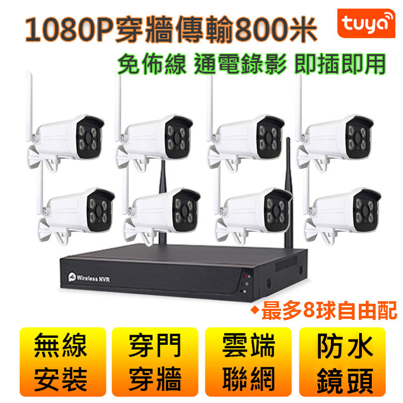隨插即用 800米無線防水監視器組【1080P戶外夜視防水無線鏡頭 可錄音說話】TUYA遠端APP手機 NVR攝影機