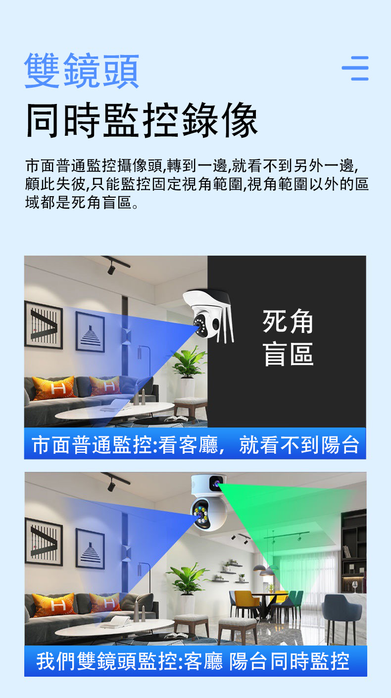 水平視角:2顆 300萬 1080P 3.6mm約90度