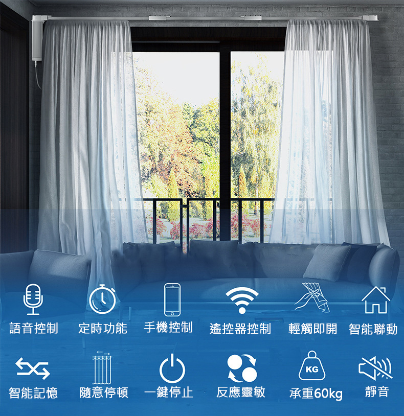 6. 建議窗簾:高4m,寬8m以內,重量不超過50kg