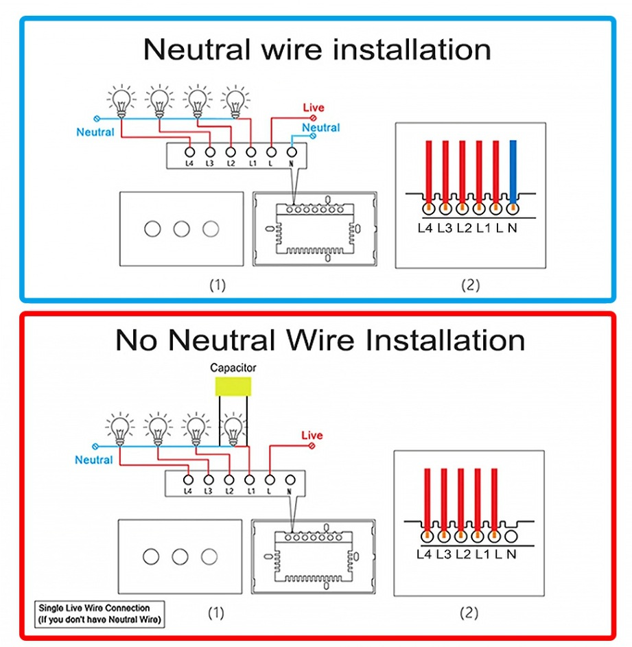 •單火線的電容必須接在L1燈兩端