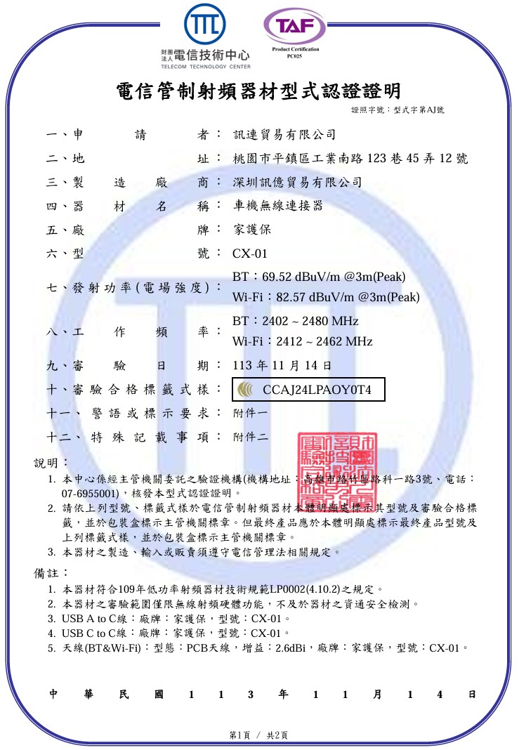 1.安全有保障:已合法取得NCC認證,家護保原廠保固兩年(保固範圍條款請參考商品說明書)