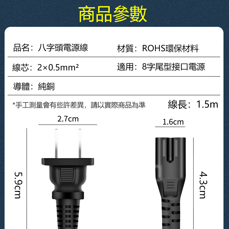八字頭電源線 1.5米 適用筆記型變壓器/電子坪/印表機/投影機等