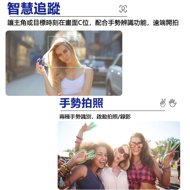 商品功能:穩拍、補光、智慧追蹤、手勢拍照
