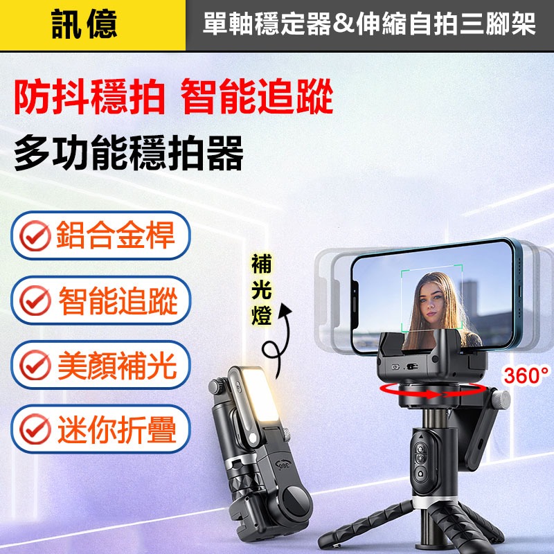 訊億 多功能智慧穩拍自拍棒 360°雲台穩定 補光燈 三腳架 智慧追蹤 Vlog直播神器