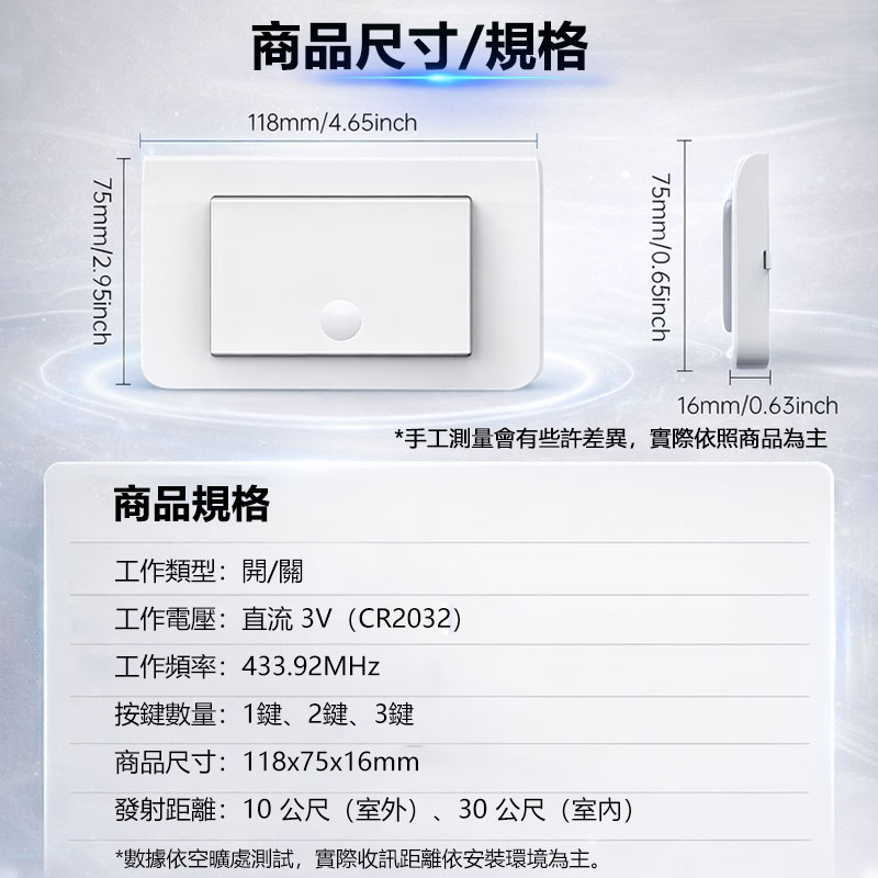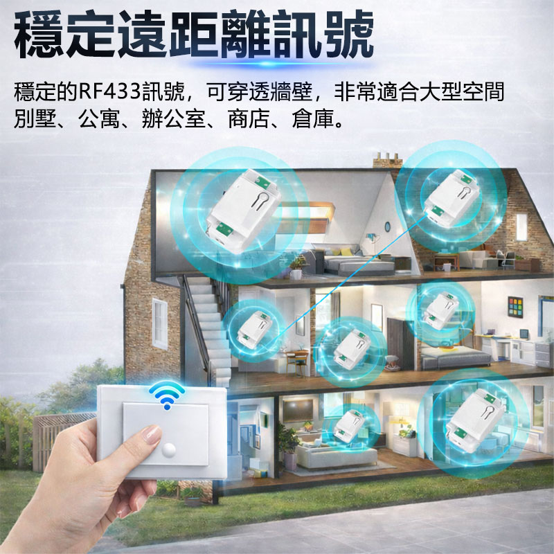 【超強穿牆性能】:採用 RF433 穩定頻率,信號可穿牆,別墅/大空間也收得到。