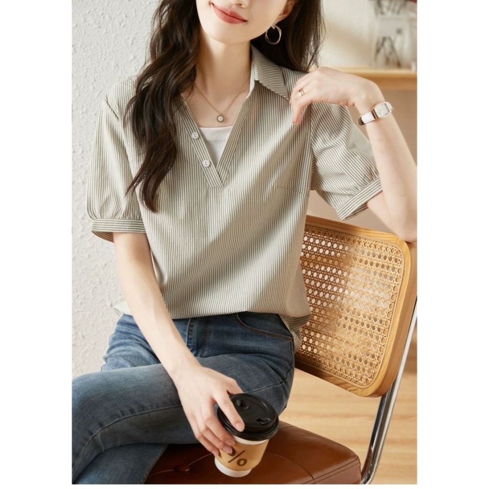 襯衫版型知性氣質,落肩的版型營造微微的慵懶感,