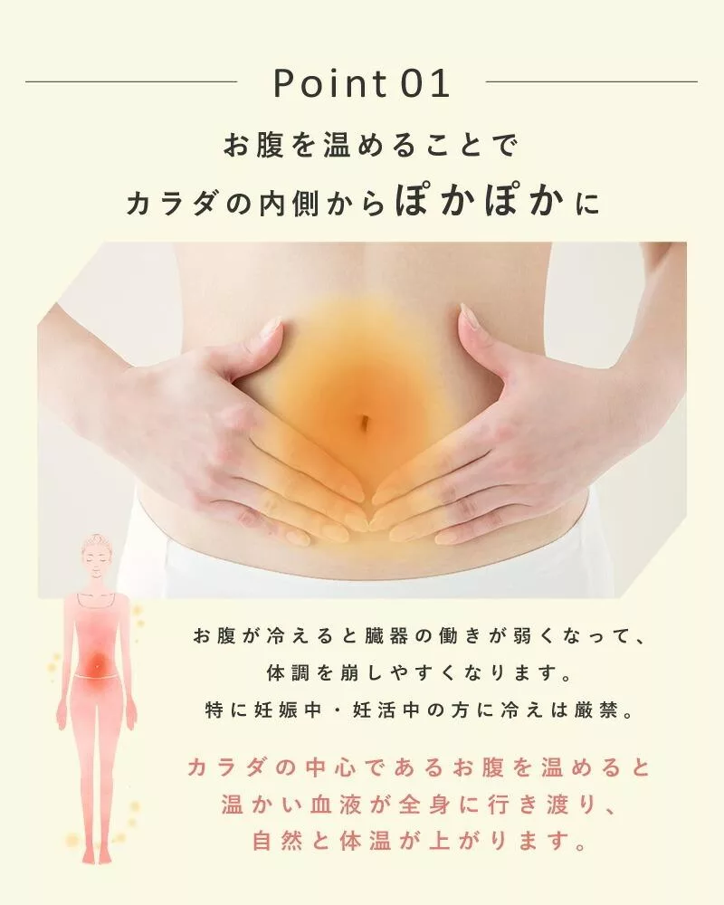 【全身保暖】透過腹部保暖,從身體內部達到全身溫度上升。