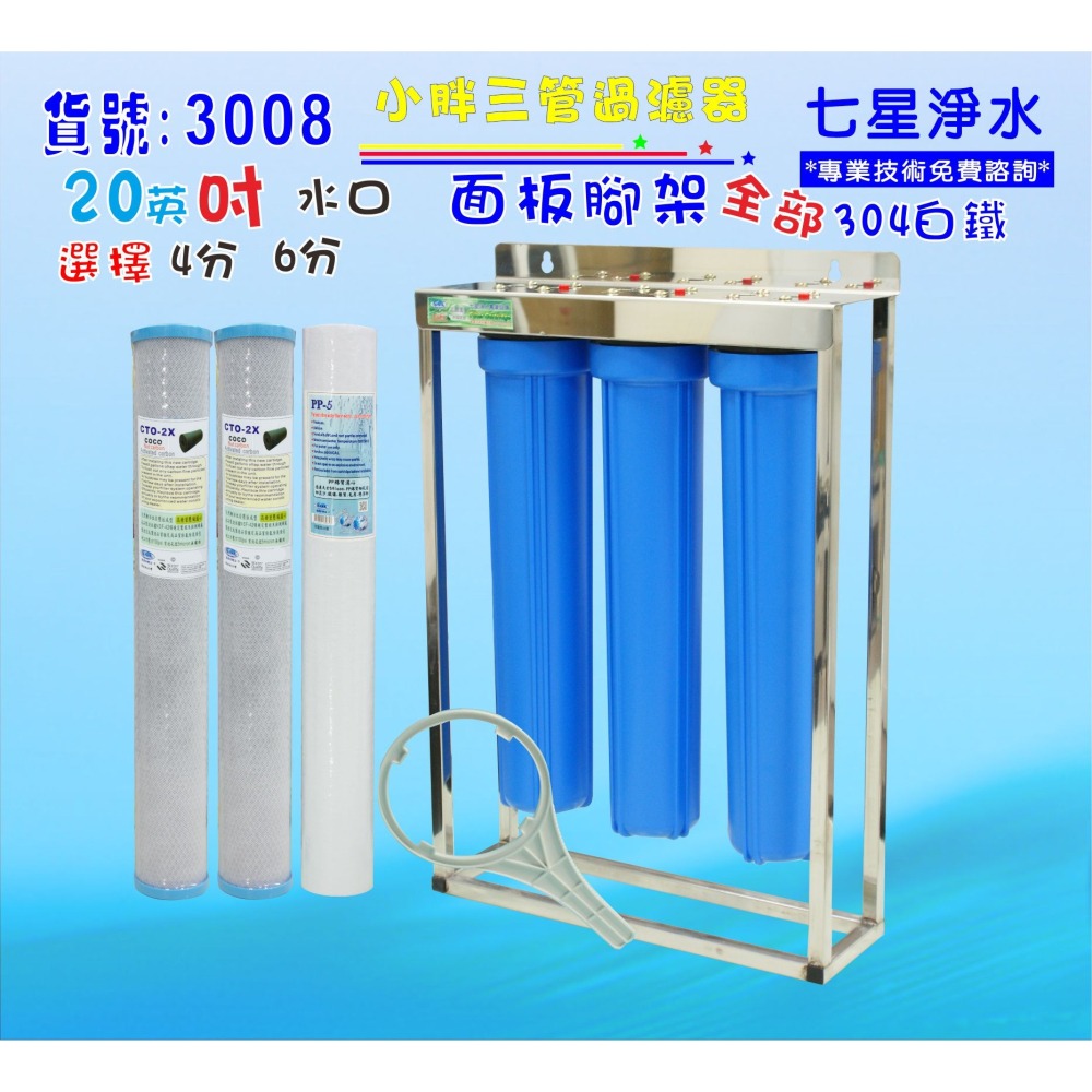 品名: 20”小胖三管白鐵腳架型過濾器組/附贈板手1支/含濾心