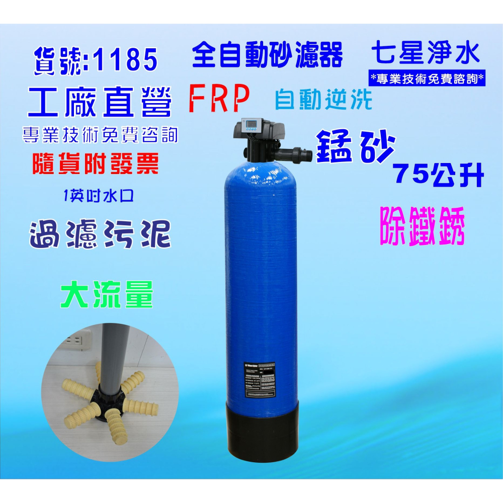 貨品編號:B1185 多筆商品選購只要付一次運費即可!(隨貨附發票) 工廠直營/專業免費安裝技術咨詢! 品名:75公升全自動控制除鐵錳砂過濾器 交貨原料數量:75公升 . 除鐵錳砂 功用:過濾去除、水中雜質、泥垢髒、去除水中鐵銹. 適用範圍:可用於大型RO淨水設備系統前置過濾、家庭水塔過濾、工廠機械冷卻、地下水水源、大型養殖水源過濾. 進出水口:2英吋NPT內牙 進水壓力必須1馬達壓力,逆洗操作才可完全! 可選擇:110V或220V