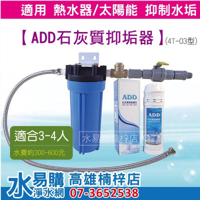 ADD石灰質抑制淨水器《03型》: 有效抑制水垢與水塔青苔(水費約500元內)熱水器前安裝~水易購高雄楠梓店