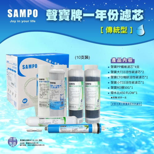 聲寶 SAMPO 傳統型 RO一年份濾心10支組 含RO膜 -適用各廠牌10吋淨水器~ 水易購 楠梓店