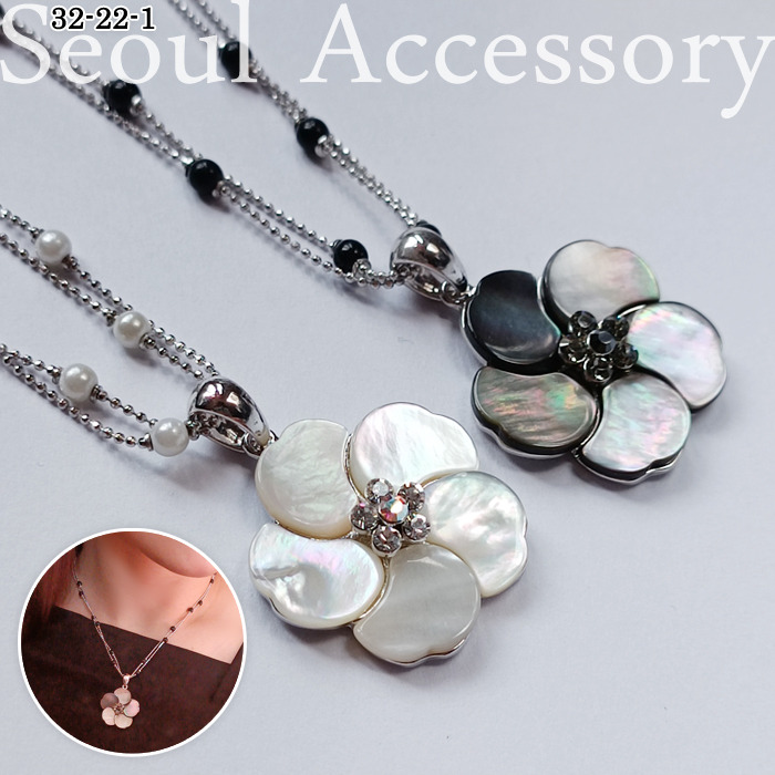 [現貨]首爾飾集 正韓國製 專櫃精品 宴會名媛 貝殼花兒珍珠水晶鑽雙層項鍊32-22-1