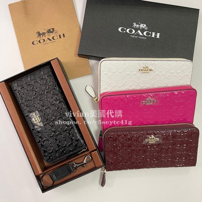 vivian美國代購✨正品 coach 女生浮雕C字壓紋錢包 拉鏈長夾 禮盒套裝配鑰匙扣 54805 女生長夾 女錢包
