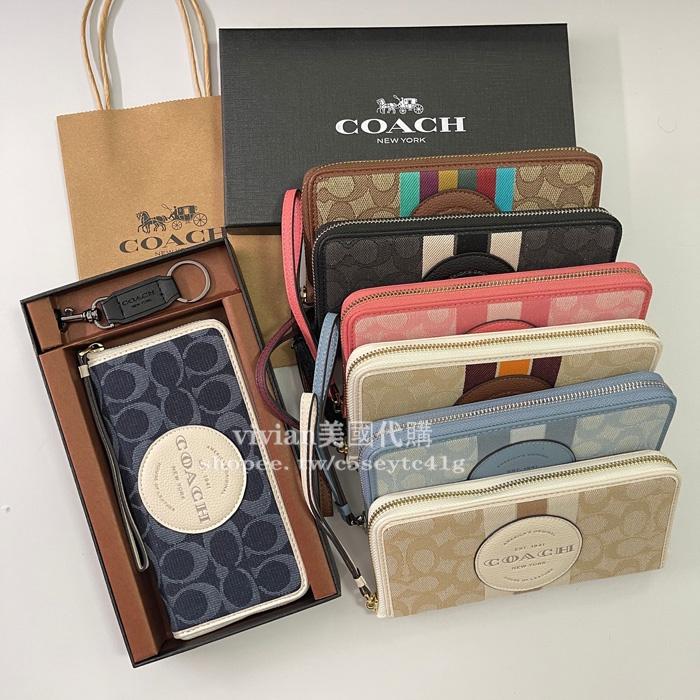 vivian美國代購✨正品 COACH 女士折疊長夾 拉鏈手腕包 禮盒套裝 C9703 女士長夾 女生錢包 女皮夾 錢包