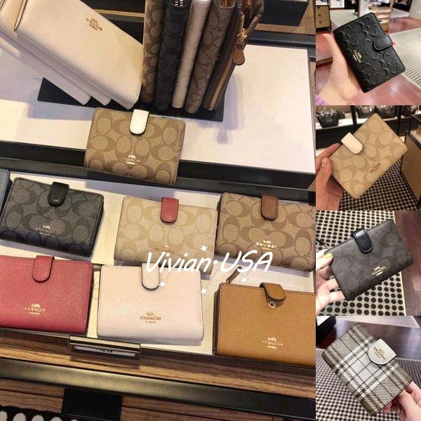 vivian美國代購✨正品 coach 女士新款女生中夾 按扣對折中夾 女生真皮皮夾 素色短夾 零錢夾 F25937