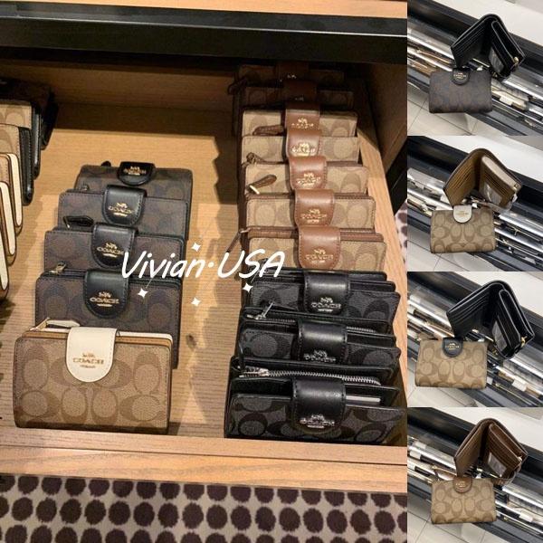 vivian美國代購✨正品 coach 新款女生中夾 扣式多卡位零錢包 真皮短夾 防刮皮夾 女士錢包 C0082/639
