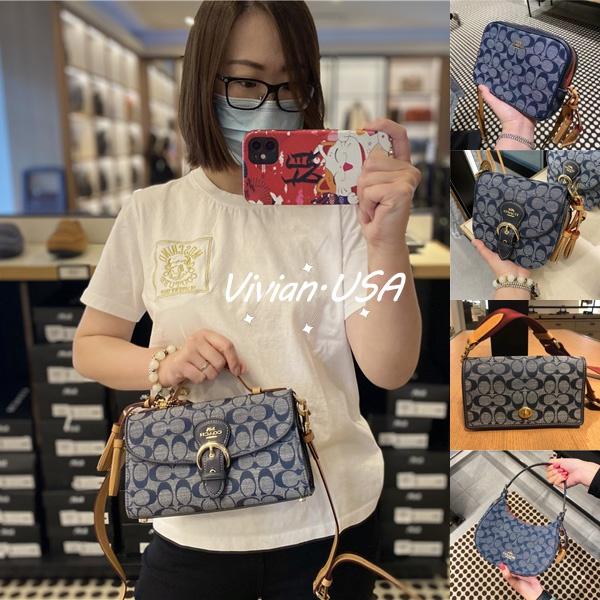 vivian美國代購✨正品coach 女生香布雷帆布款風琴包 酒神包 牛仔系 翻蓋包 單肩斜挎手提包 3693 女生包包
