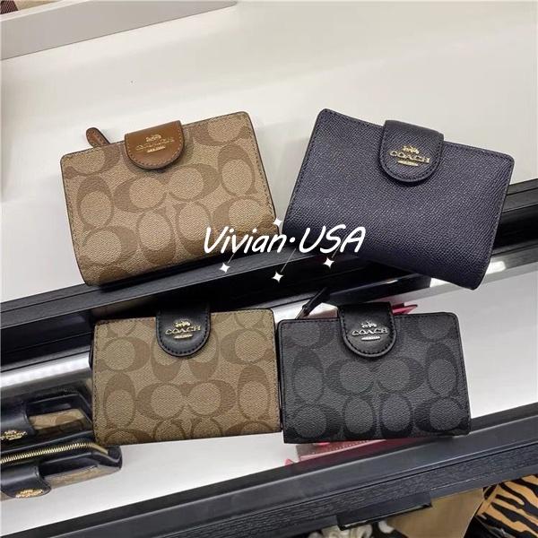 vivian美國代購✨正品 coach 女生小短夾 女生按扣對折中夾 防刮錢包皮夾 C0082女生皮包 女生錢包