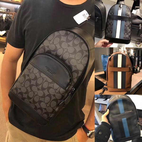 vivian美國代購✨正品 coach 新款男士時尚牛皮胸包 單肩斜挎包 休閑男包 商務休閑大容量胸包背包