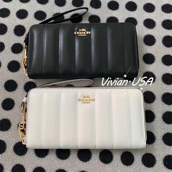 vivian美國代購✨正品 coach 女士 條紋系列女生長夾 真皮 手拿包 皮夾 錢包 C4454 女生錢包 女用長夾