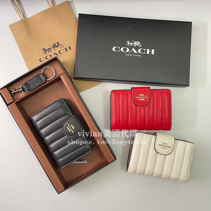 vivian美國代購✨正品 coach 中型搭扣錢包 多卡位錢夾 女款中夾短夾 禮盒套裝 C3454 女生錢包