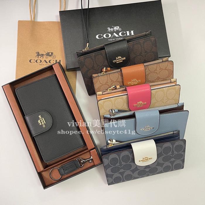 vivian美國代購✨正品 coach 女生拉鍊對折錢包 鍊扣搭扣中長夾 手機包 C2869 禮盒套裝 女士中夾