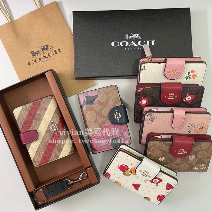 vivian美國代購✨正品 coach 女錢包 拉鏈對折中夾 中號按扣短夾 零錢袋禮盒套裝 C2885 女生短夾 錢包