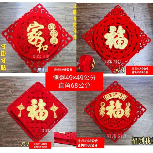 尺寸:請看圖片 材質:無紡布植絨立體/龍紋字 可掛可黏貼(賣場有售點點膠) 收到時須自行扣上禮拜邊 開運,新居,居家佈置都可使用❤️ 在家中掛上(貼上)這個春聯祝福語 都是沒有附上背面的黏貼膠 如因工藝上的一些小問題不算瑕疵範圍喔 如要求完美著請慎思喔~ 因超商寄送有限制尺寸問題 寄送方式請選「宅配郵寄」 每一批的字體用料可能有時候會稍改款喔 台灣現貨為主可以下標都有現貨 ●現貨基本1-2天可以配送寄出 ●如臨時缺貨3-10天配送寄出 配送須知: ●超商取貨付款約3天可收到商品(正常配送下) ●宅配2-3天(遇假日順延) 免運門檻須知: ●依照蝦皮官方公布滿額免運為主 ●網頁商品會因為使用不同的品牌螢幕以及解析度不同,造成圖片顏色呈現略有不同,請以實品顏色為準 ●本賣場已完成稅籍登記 如需二聯統編發票.請下標時在備註告知統編 如需三聯手開發票.請聊聊詢問外加額