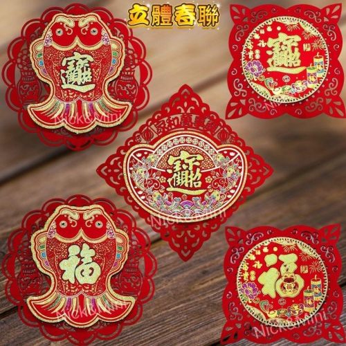 Mini生活館 福 春聯 財神福 立體絨布春聯 年年有餘 金元寶 新居 入厝用品 開運 節慶 佈置 過年 開幕