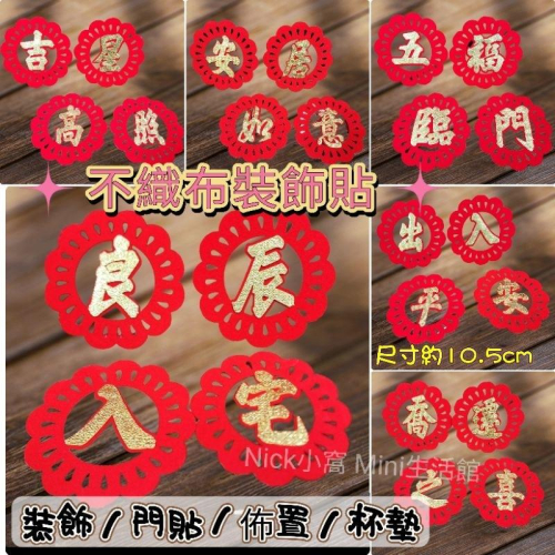 Mini生活館 不織布裝飾貼 壁貼 牆貼 新居 入厝 開運 年節 過年 佈置 杯墊 窗貼 五福臨門 出入平安 安居如意