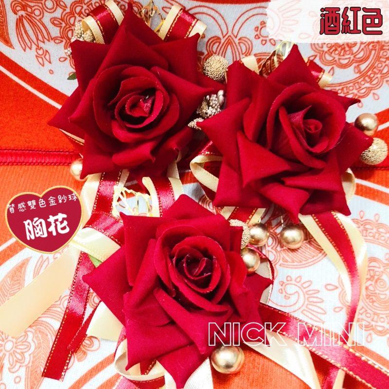 玫瑰胸花 結婚胸花 金葉金球胸花 婚禮 訂婚 絨布胸花 結婚 畢業典禮 新郎新娘 開幕 胸條 剪綵