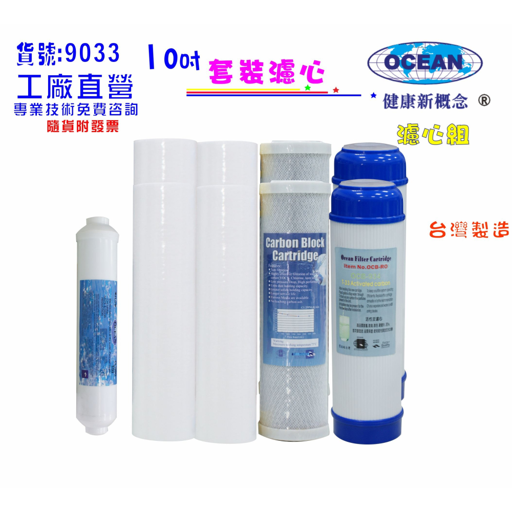 貨品編號: 509033 標物數量:年份10”套裝組濾心數9支 超值價:套裝組266元 (隨貨附發票) 高密度5mPP綿質(目前淨水市場評定最佳!最好的濾心) 使用100%(PP) 聚丙烯材質製造過程二層製作方法 (內層緊1m外層5m密度緊收) 功用:攔截泥沙.鐵鏽.毛髮.懸浮物攔截泥沙.鐵鏽.毛髮.懸浮物.過濾去除器重金屬、水中餘氯、化學物質、水中雜質、泥垢髒. 適用於廚房過濾烹飪、洗滌、煮沸飲用、水族養殖 規格:10”英吋 孔徑 5微米 ( 1m ) 1.第一道 高級棉質PP濾心4支 2.第二道 活性炭濾心2支 3.第三道 CTO精密壓縮活性炭濾心2支 4.第五道 ST-活性炭濾心1支