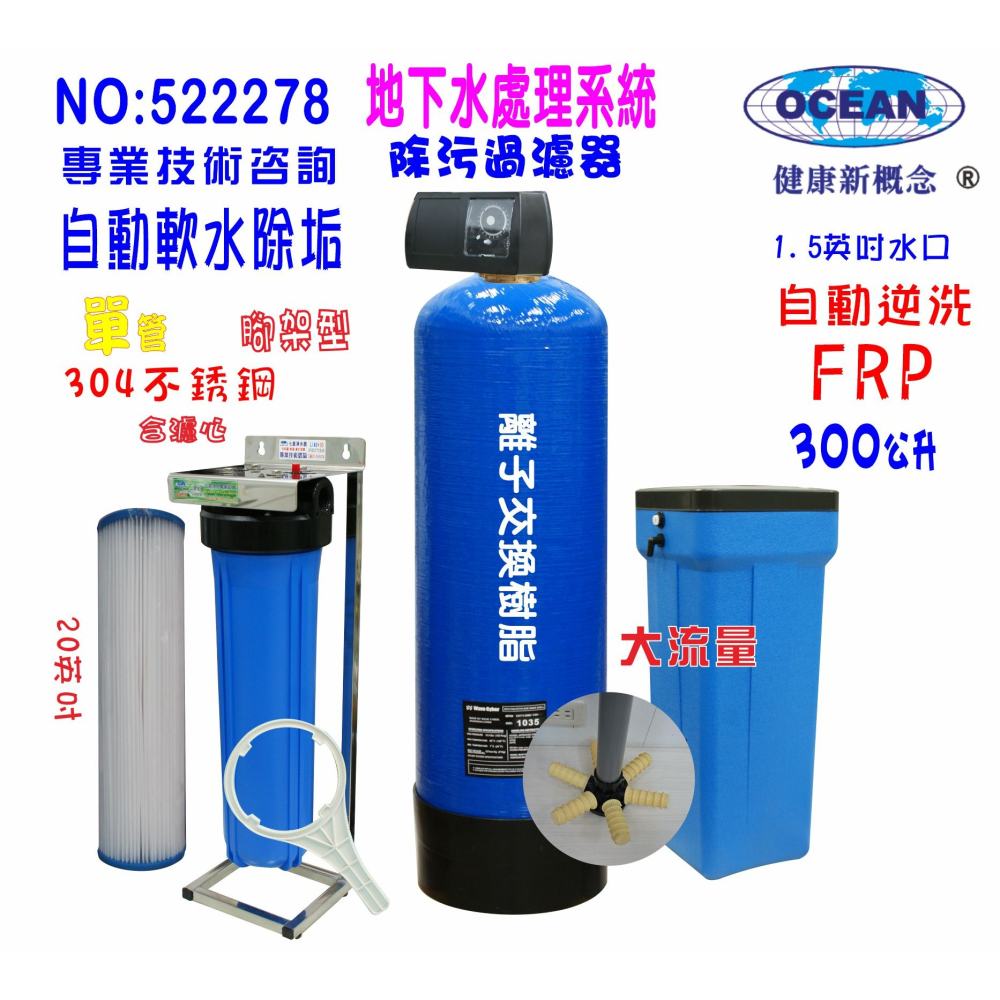 品名:300公升單槽式全自動控制軟水器