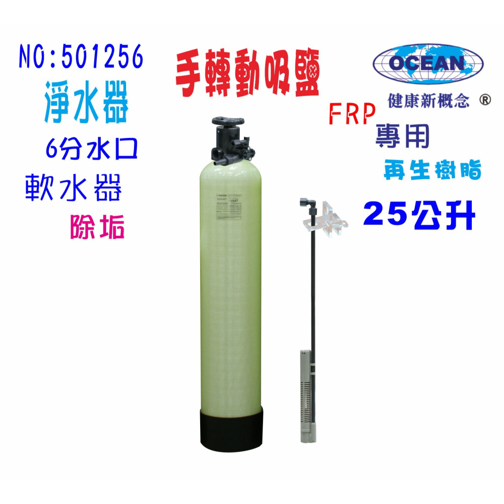 功用:手動逆洗>吸鹽>再生還原數脂>除水中水垢、懸浮物、泥沙可水中碳酸鈣(茶垢),降低水硬度 離子交換原理:樹脂軟水器,去除水中鈣、鎂等(茶垢)經由樹脂軟水器控制器、定置樹脂罐體與鹽桶結合整體化設備。手轉動 沖洗控制,吸鹽、浸泡、反洗、再生、手動完成軟化水、正洗後鹽箱手動補水。**樹脂材料可反復再生使用3~5年** 適用範圍:可用於RO淨水設備系統前置過濾、水塔過濾、工廠機械冷卻、地下水水源、養殖水源軟化過濾.熱水器.咖啡機.製冰機.家庭飲水.餐廳.茶飲店.早餐店.小吃麵館. 進出水口:6英吋NPT內牙 >進水壓力必須自然水壓1 Kg,鹽水逆洗操作才可完全!